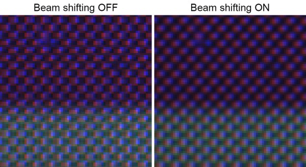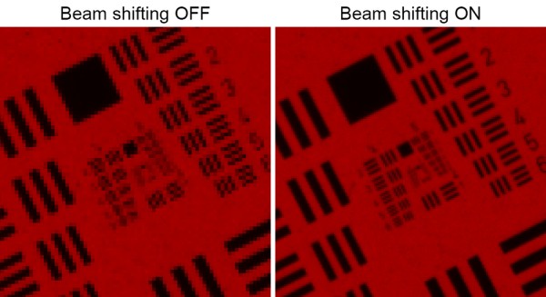 分辨率從 65 lp/mm(USAF 組 3 元件 4)增加到 130 lp/mm(USAF 組 4 元件 4),接近此相機(jī)(IMX265)的奈奎斯特極限 145 lp/mm,從而可以在所有三個(gè)顏色通道上實(shí)現(xiàn)全分辨率。
